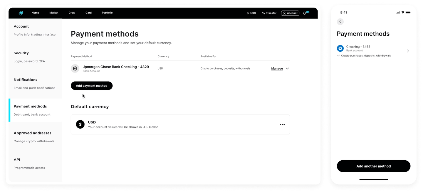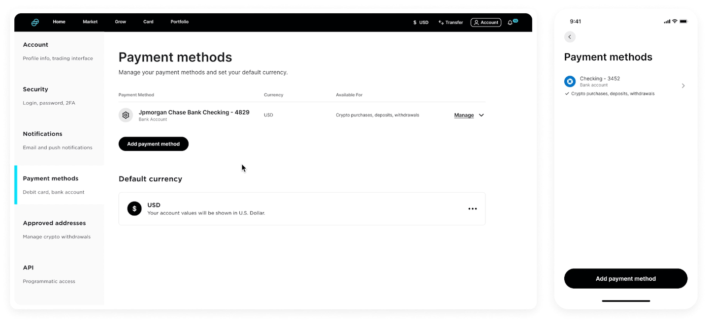 Updated the experience by adding wire transfers as a payment method option. Additionally, users can now select the currency to display the correct deposit instructions later in the experience. After users submit their details, we provide messaging for verifying their bank account.