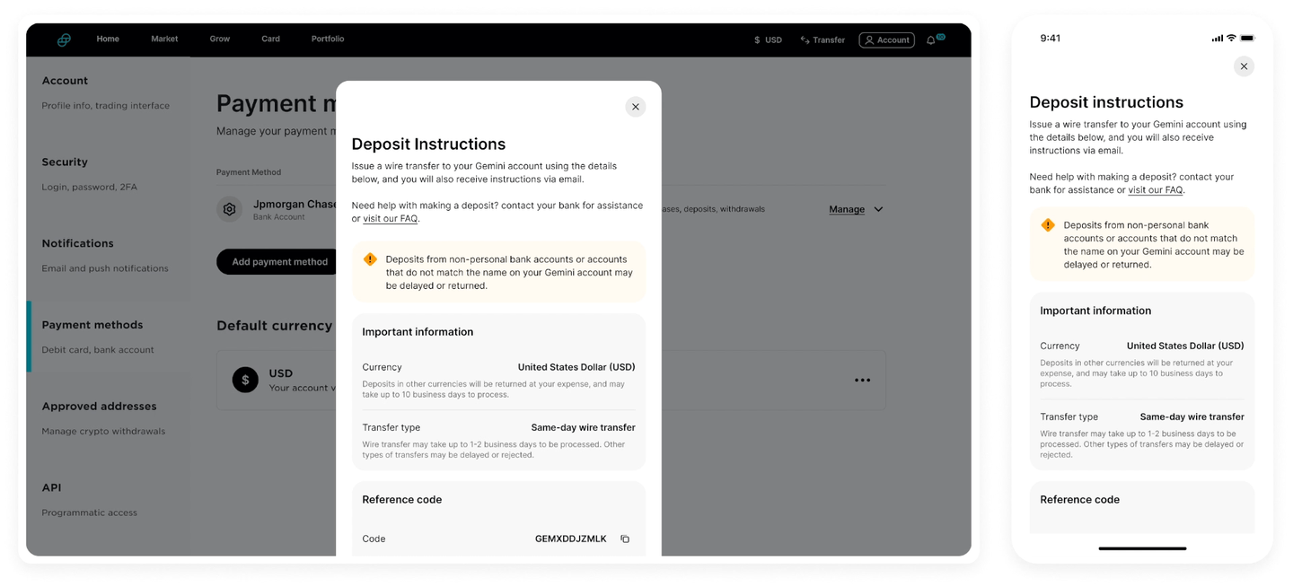 We streamlined the process for adding wire transfers as a payment method and updated the design for the deposit instructions.