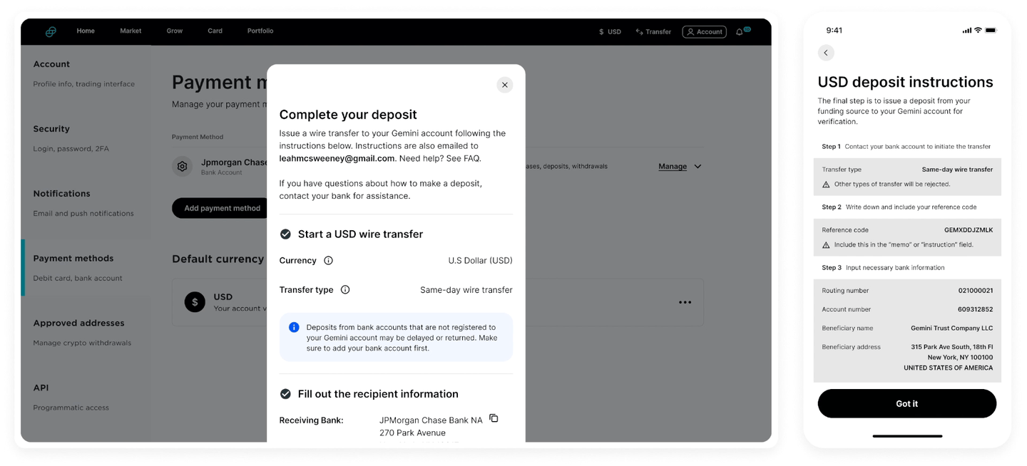For users of the Gemini exchange, wire transfers provide a secure way to move funds between their bank account and their cryptocurrency account. It helps users easily deposit funds into their account and start trading cryptocurrencies, or withdraw their funds to their bank account.
